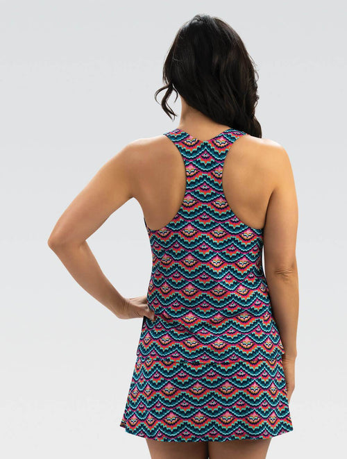 Swim laps or lounge by the pool in the Aquashape Feathers Racerback Tankini Top. The sporty look and feel will have you excited for your next activity!Limited Availability, get it while it lasts!