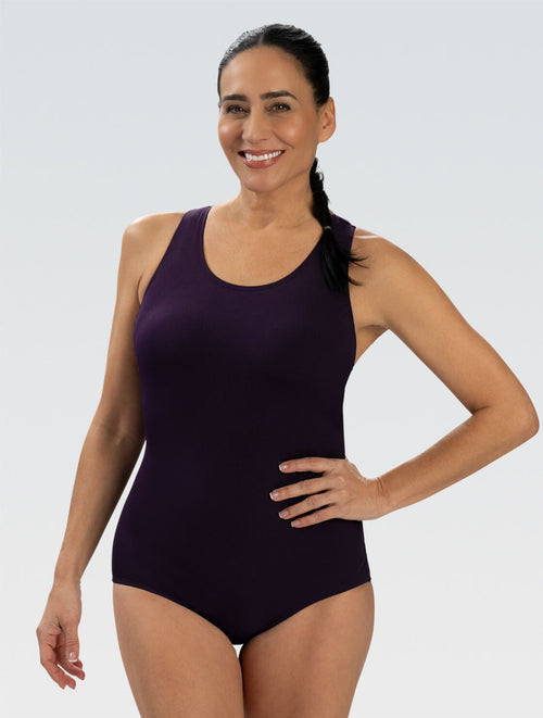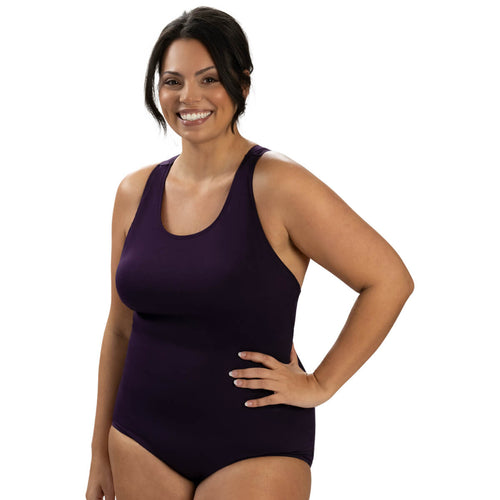 Women's Aquashape Plum Conservative Lap Suit Style #60553-D90