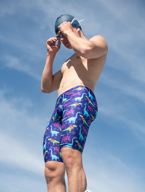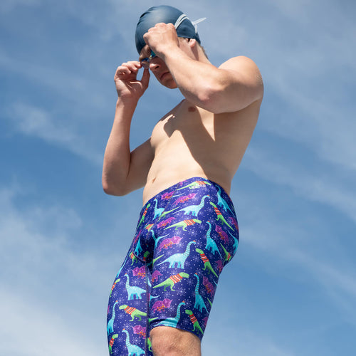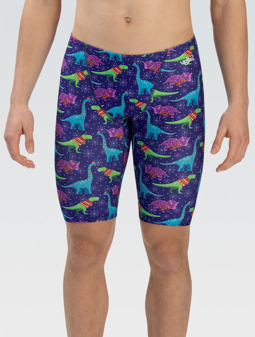 Get cozy in the fast lane with the Uglies Men's Wrapped Up Jammer Swimsuit! Featuring a fun print of dinosaurs snuggled in scarves, this durable jammer offers the performance you need with a touch of whimsical warmth.Limited Availability, get it while it lasts!